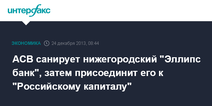 В последующем планируется присоединить "Эллипс банк" к АКБ "Российский капитал", который находится под контролем АСВ.
