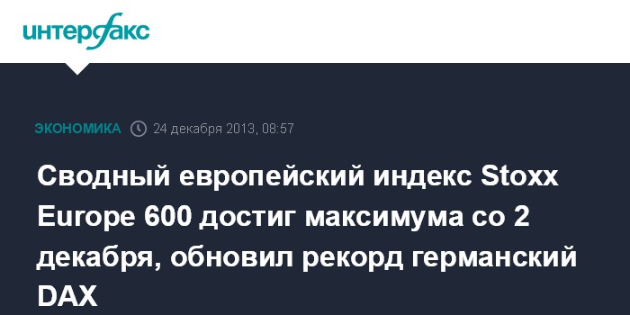 Сводный европейский индекс Stoxx Europe 600 достиг максимума со 2 декабря, обновил рекорд германский DAX