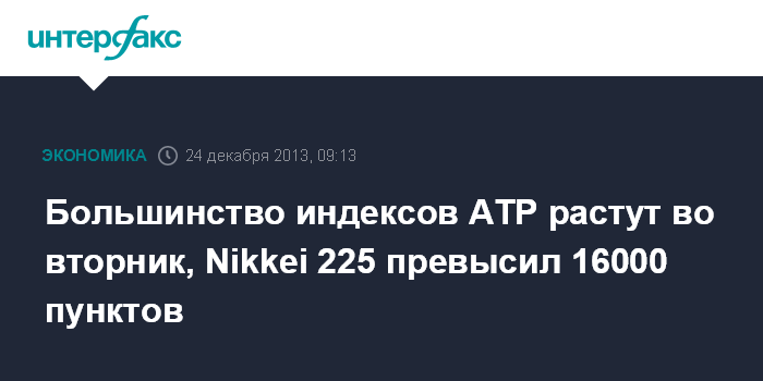 Большинство индексов АТР растут во вторник, Nikkei 225 превысил 16000 пунктов