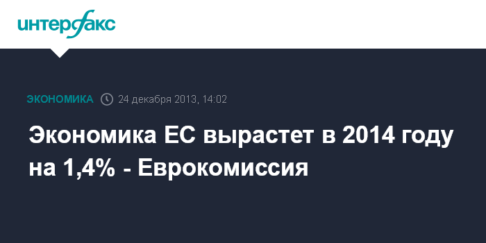 Согласно прогнозам Еврокомиссии, совокупный ВВП 28 стран ЕС вырастет в 2014 году на 1,4%, а в 18 странах еврозоны - на 1,1%. "Еще рано праздновать победу, однако множатся признаки того, что европейская экономика достигла поворотного пункта", - заявил в Брюсселе комиссар по вопросам финансов Олли Рен.