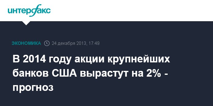 В 2014 году акции крупнейших банков США вырастут на 2% - прогноз