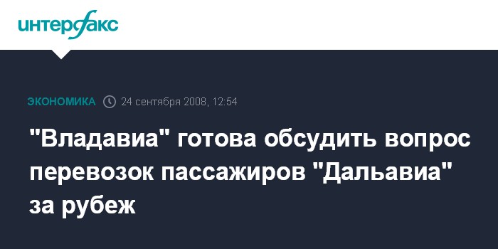 Москва. 24 сентября. INTERFAX.RU - Авиакомпания "Владивосток Авиа" готова рассмотреть вопросы по перевозке пассажиров хабаровского перевозчика по международным маршрутам "Дальавиа", сообщила служба по связям с общественностью "Владавиа".