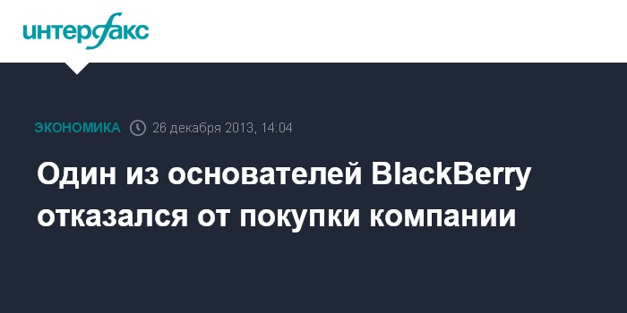 Москва. 26 декабря. INTERFAX.RU - Один из основателей канадской BlackBerry Майк Лазаридис отказался от идеи покупки компании совместно с еще одним ее соучредителем Дагом Фрегином, сообщает MarketWatch со ссылкой на данные Комиссии по ценным бумагам и биржам (SEC).