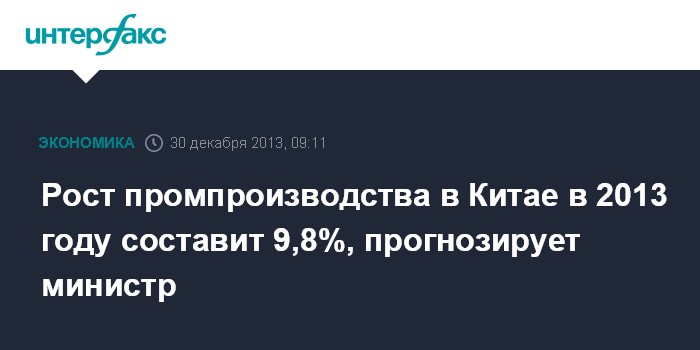 Рост промпроизводства в Китае в 2013 году составит 9,8%, прогнозирует министр