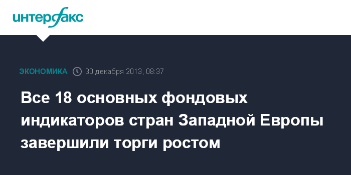 Все восемнадцать основных фондовых индексов стран Западной Европы продемонстрировали подъем 27 декабря.