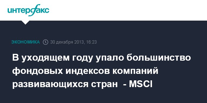 Индекс MSCI Emerging Markets по состоянию на завершение торгов 27 декабря упал на 5,7% по сравнению с аналогичным днем 2012 года. Повышение наблюдалось среди индексов MSCI для Египта (7,2%), Тайваня (3,8%), Южной Кореи (2,5%) и Малайзии (2,1%). Индекс MSCI для Греции, который был переведен в категорию индексов развивающихся стран из развитых в ноябре 2013 года, подскочил за год на 37,9%.