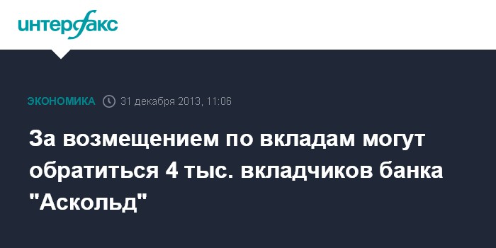 За возмещением по вкладам могут обратиться 4 тыс. вкладчиков банка "Аскольд"