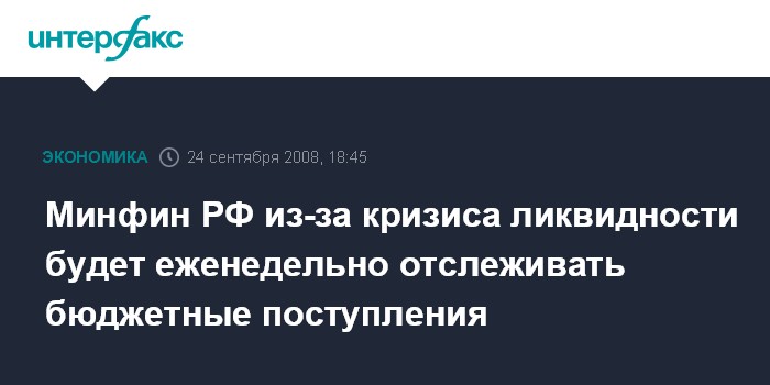 Москва. 24 сентября. INTERFAX.RU - Минфин РФ переходит от ежемесячного к еженедельному мониторингу поступлений доходов в бюджет, сообщили агентству "Интерфакс-АФИ" источники в налоговых органах и Минфине.
