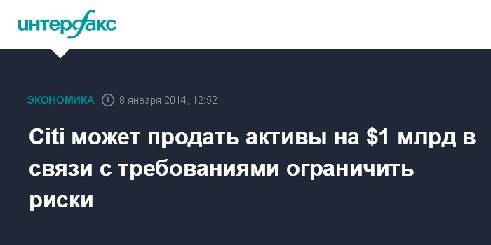 Citi может продать активы на $1 млрд в связи с требованиями ограничить риски