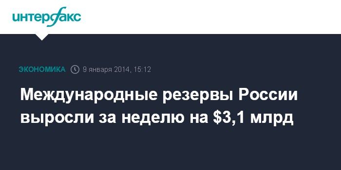 Москва. 9 января. INTERFAX.RU - Международные резервы России на 27 декабря 2013 года составили $511,6 млрд, сообщила в четверг пресс-служба Банка России.