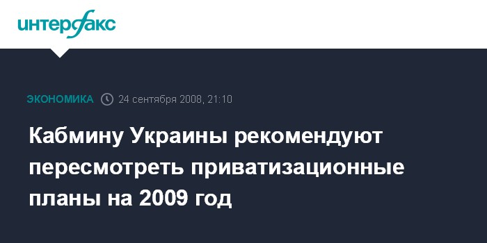 Кабмину Украины рекомендуют пересмотреть приватизационные планы на 2009 год