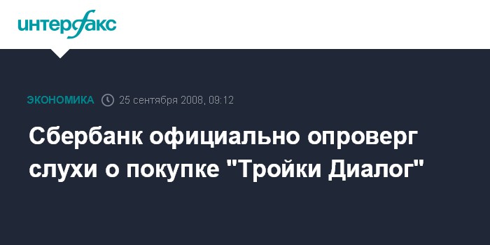 Москва. 25 сентября. INTERFAX.RU - Сбербанк России официально опроверг циркулирующие на рынке слухи о покупке инвестиционной компании "Тройка Диалог".