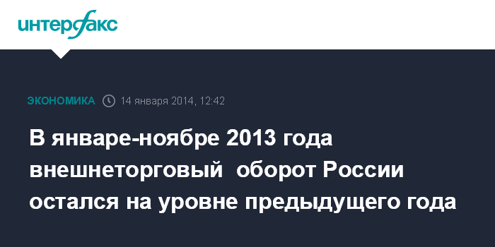 В январе-ноябре 2013 года внешнеторговый оборот России остался на уровне предыдущего года