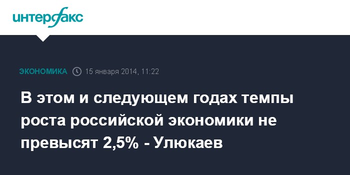 15 января. FINMARKET.RU - Глава Минэкономразвития Алексей Улюкаев считает, что российская экономика в 2014 - 2015 годах и, возможно, в последующие годы будет расти темпами не выше 2,5%.