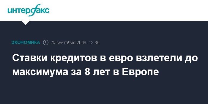 Москва. 25 сентября. INTERFAX.RU - Стоимость привлечения кредитов в евро сроками на один и три месяца на межбанковском рынке в четверг взлетела до максимума за 8 лет, сообщило агентство Bloomberg.