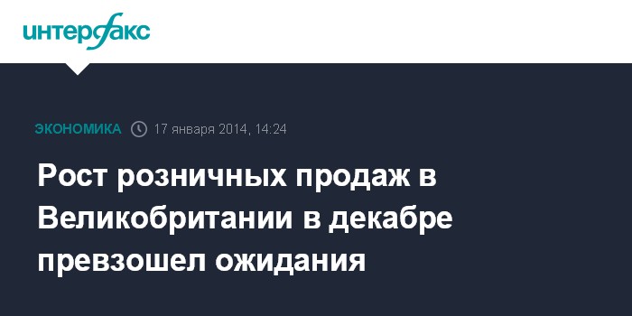 17 января. FINMARKET.RU - Объем розничных продаж в Великобритании в декабре 2013 года увеличился на 2,6% по сравнению с предыдущим месяцем, свидетельствуют данные Национального статистического управления (ONS) страны.