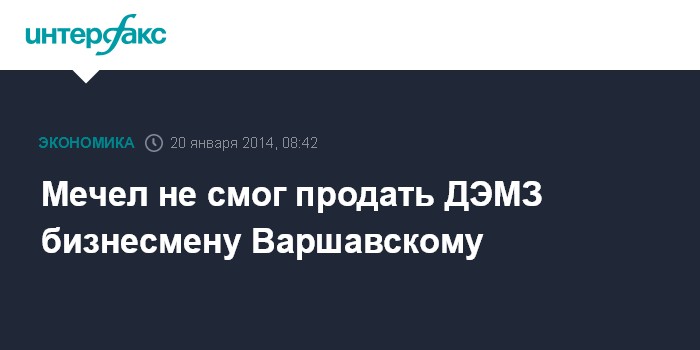 В августе"Мечел" подписал с Варшавским соглашение о продаже ДЭМЗ за 2 тыс. евро, сообщила компания. Покупатель взял на себя обязательство по погашению задолженности ДЭМЗ перед группой "Мечел" на сумму до $81 млн в зависимости от времени погашения.