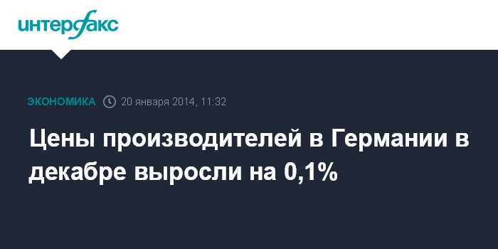 20 января. FINMARKET.RU - В декабре 2013 года цены производителей в Германии выросли на 0,1% относительно предыдущего месяца, когда их снижение составило 0,1%, свидетельствуют данные Федерального статистического агентства страны (Destatis).