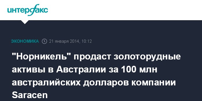 "Норникель" продаст золоторудные активы в Австралии за 100 млн австралийских долларов компании Saracen