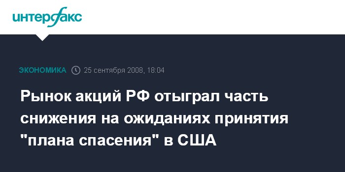 Рынок акций РФ отыграл часть снижения на ожиданиях принятия "плана спасения" в США
