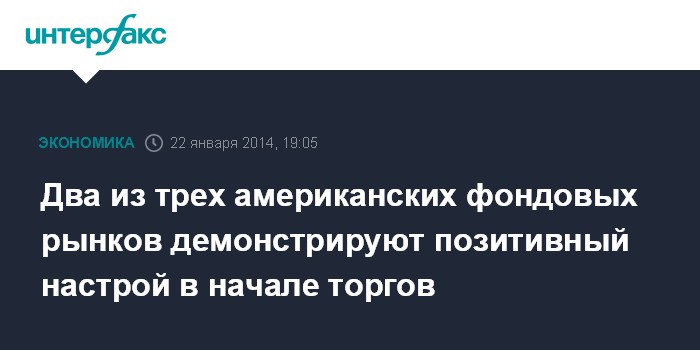 Два из трех американских фондовых рынков демонстрируют позитивный настрой в начале торгов
