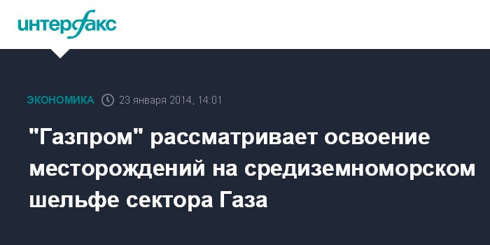 Ново-Огарево. 23 января. INTERFAX.RU - "Газпром" рассматривает вопрос о целесообразности освоения газовых месторождений на средиземноморском шельфе сектора Газа.