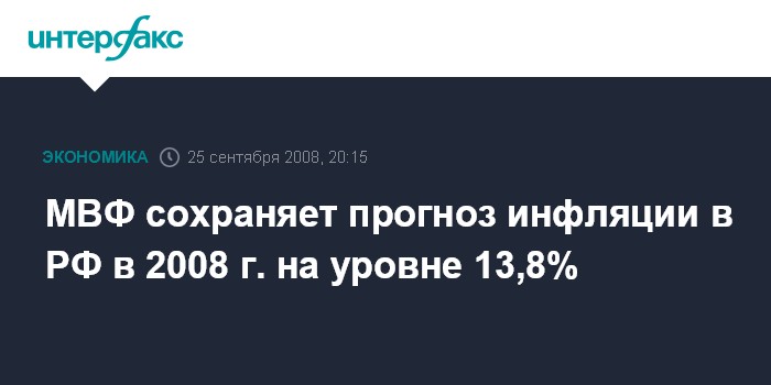 МВФ сохраняет прогноз инфляции в РФ в 2008 г. на уровне 13,8%
