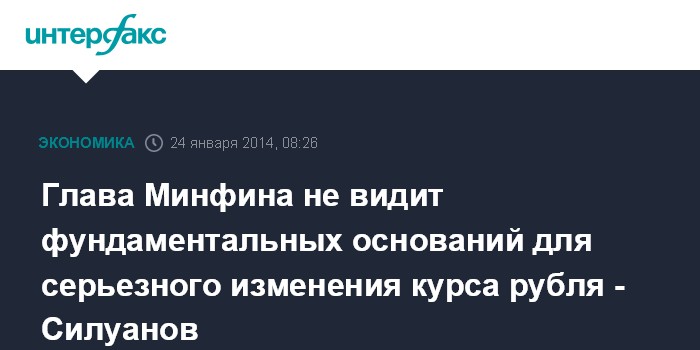 24 января. FINMARKET.RU - Министр финансов РФ Антон Силуанов не видит пока проблем с курсом рубля. По его словам, "фундаментальных оснований для того, чтобы рубль ослаблялся или укреплялся, нет".