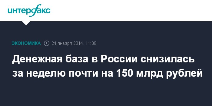 Денежная база в России снизилась за неделю почти на 150 млрд рублей