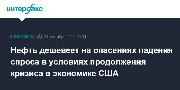 Москва. 26 сентября. INTERFAX.RU - Нефть дешевеет на опасениях падения спроса на топливо и сырье в условиях продолжения кризиса в американской экономике, сообщило агентство Bloomberg.