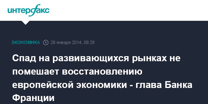 Спад на развивающихся рынках не помешает восстановлению европейской экономики - глава Банка Франции