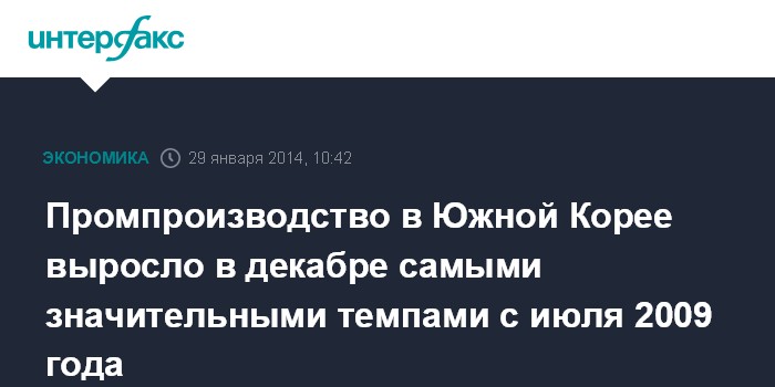 29 января. FINMARKET.RU - Объем промышленного производства в Южной Корее вырос в декабре 2013 года на 3,4% по сравнению с предыдущим месяцем, когда наблюдался подъем всего на 0,1%, свидетельствуют официальные данные. Такой рост промпроизводства стал самым значительным с июля 2009 года.