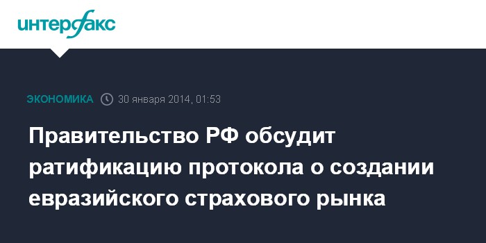 Правительство РФ обсудит ратификацию протокола о создании евразийского страхового рынка