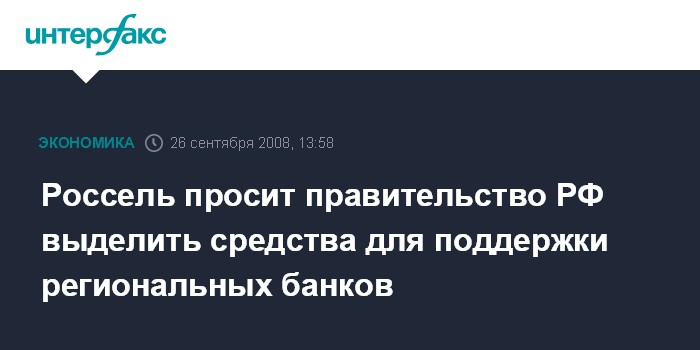 Москва. 26 сентября. INTERFAX.RU - Губернатор Свердловской области Эдуард Россель считает необходимым выделение средств из бюджета РФ для поддержки региональных банков. "Выделенные правительством деньги дальше Москвы не пошли. Мы сейчас рассматриваем этот вопрос и будем обращаться в правительство России и Центробанк, чтобы выделили лимиты для помощи региональным банкам", - сказал он на пресс-конференции в Екатеринбурге в пятницу.