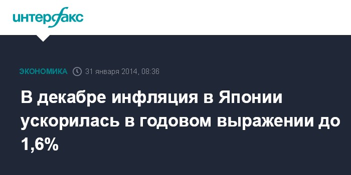 31 января. FINMARKET.RU - В декабре 2013 года инфляция в Японии ускорилась года до 1,6% в годовом выражении по сравнению с 1,5% в ноябре, свидетельствуют опубликованные сегодня официальные данные правительства страны.