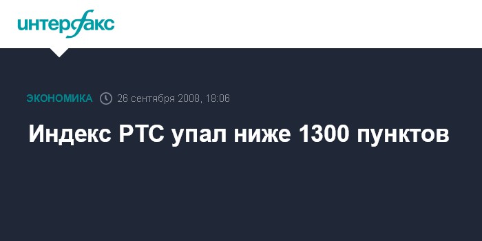 Москва. 26 сентября. INTERFAX.RU - Российский рынок акций скатился ниже 1300 пунктов по индексу РТС за счет снижения большинства blue chips во главе со Сбербанком России после краха очередного крупного американского банка Washington Mutual (WaMu). Бумаги "Полюса" взлетели почти на 20% на новостях.