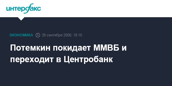 Потемкин покидает ММВБ и переходит в Центробанк