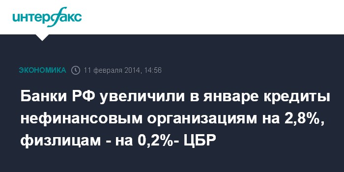 Банки РФ увеличили в январе кредиты нефинансовым организациям на 2,8%, физлицам - на 0,2%- ЦБР