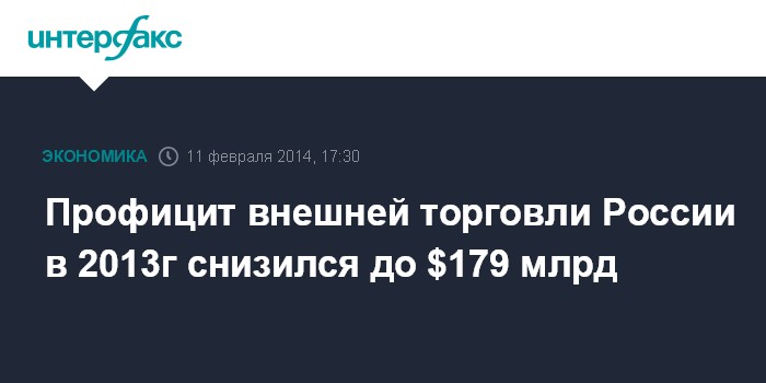 Профицит внешней торговли России в 2013г снизился до $179 млрд