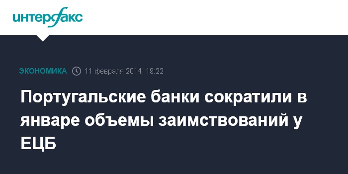 Использование португальскими банками различных кредитных механизмов ЕЦБ сократилось в январе до 47 млрд евро о сравнению с 47,86 млрд евро в декабре. Январский уровень стал минимальным за два года. В последний раз показатель опускался ниже 47 млрд евро в январе 2012 года.
