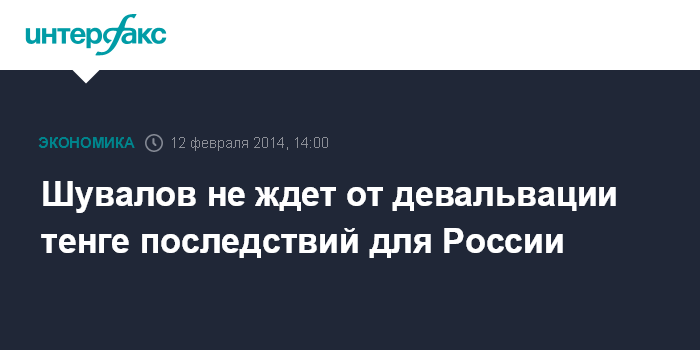 Москва. 12 февраля. INTERFAX.RU - Первый вице-премьер Игорь Шувалов считает, что девальвация казахстанского тенге никак не отразится на России.