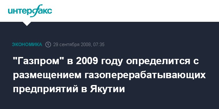 "Газпром" в 2009 году определится с размещением газоперерабатывающих предприятий в Якутии
