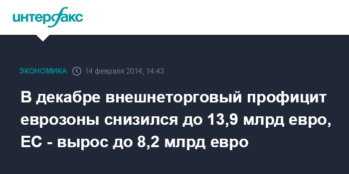 В декабре 2013 года в 28 странах Евросоюза положительное сальдо торгового баланса выросло до 8,2 млрд евро с 3,1 млрд евро в ноябре