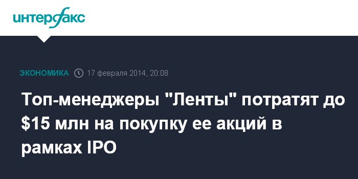 Москва. 17 февраля. INTERFAX.RU - Топ-менеджеры и члены совета директоров "Ленты" намерены купить ее акции в рамках IPO по цене размещения.