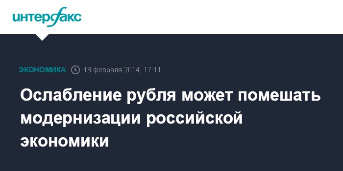 Москва. 18 февраля. INTERFAX.RU - Ослабление рубля повышает конкурентоспособность российских товаров, но мешает модернизации российской экономики, следует из "Доклада о денежно-кредитной политике", обнародованного ЦБ.
