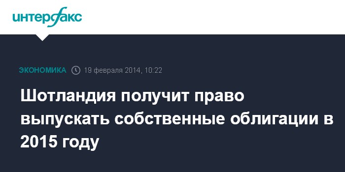 Лондон. 19 февраля. INTERFAX.RU - Шотландия сможет впервые выпустить облигации в 2015 году, пишет газета The Wall Street Journal.