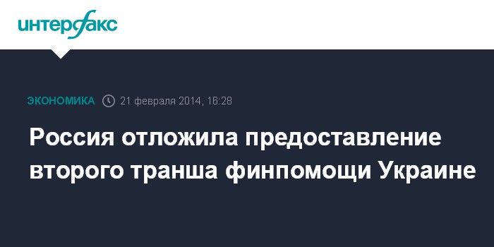 Москва. 21 февраля. INTERFAX.RU - Россия решила отложить предоставление второго транша финансовой помощи Украине, так как в нынешней ситуации нет понимания, как эти средства будут потрачены, заявил в интервью Bloomberg в Гонконге глава Минфина РФ Антон Силуанов.