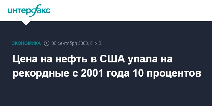 Цена на нефть в США упала на рекордные с 2001 года 10 процентов