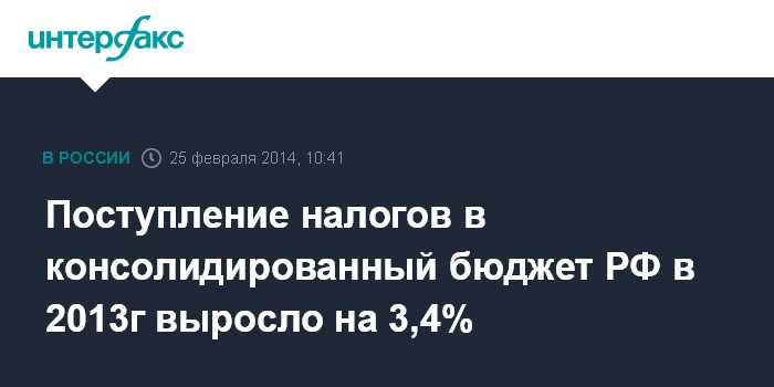 Поступление налогов в консолидированный бюджет РФ в 2013г выросло на 3,4%