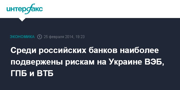 Среди российских банков наиболее подвержены рискам на Украине ВЭБ, ГПБ и ВТБ